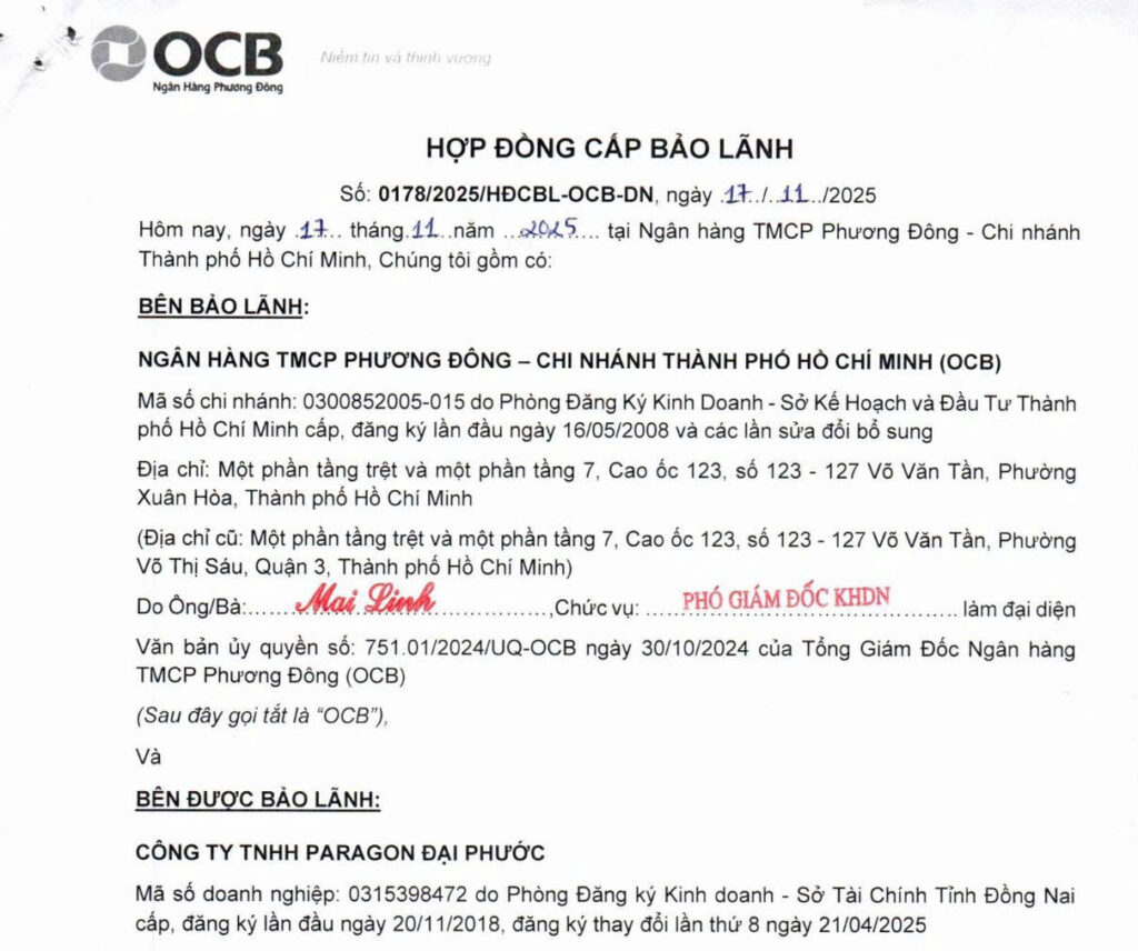 Hợp đồng bảo lãnh dự án Elyse Island Nam Long Đại Phước từ ngân hàng OCB